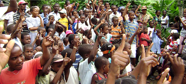 July 2009 event in Orangier, Haiti, where EAF staff met with community leaders, had an open forum discussion with the locals, distributed food, clothes, and medications...