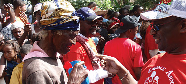 July 2009 event in Orangier, Haiti, where EAF staff met with community leaders, had an open forum discussion with the locals, distributed food, clothes, and medications...